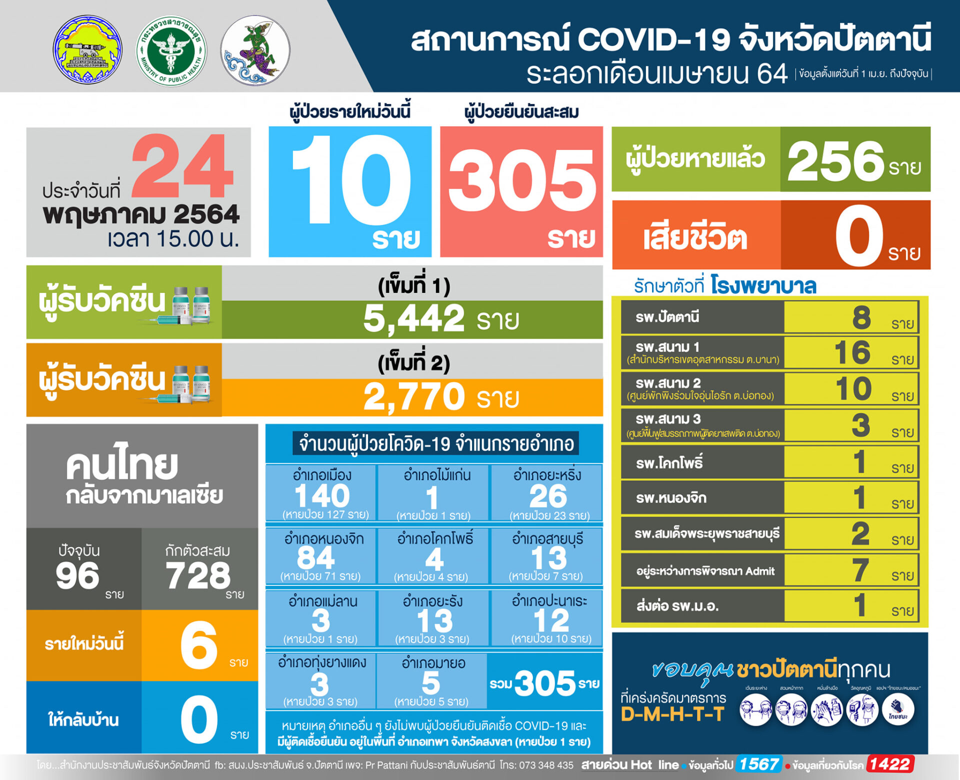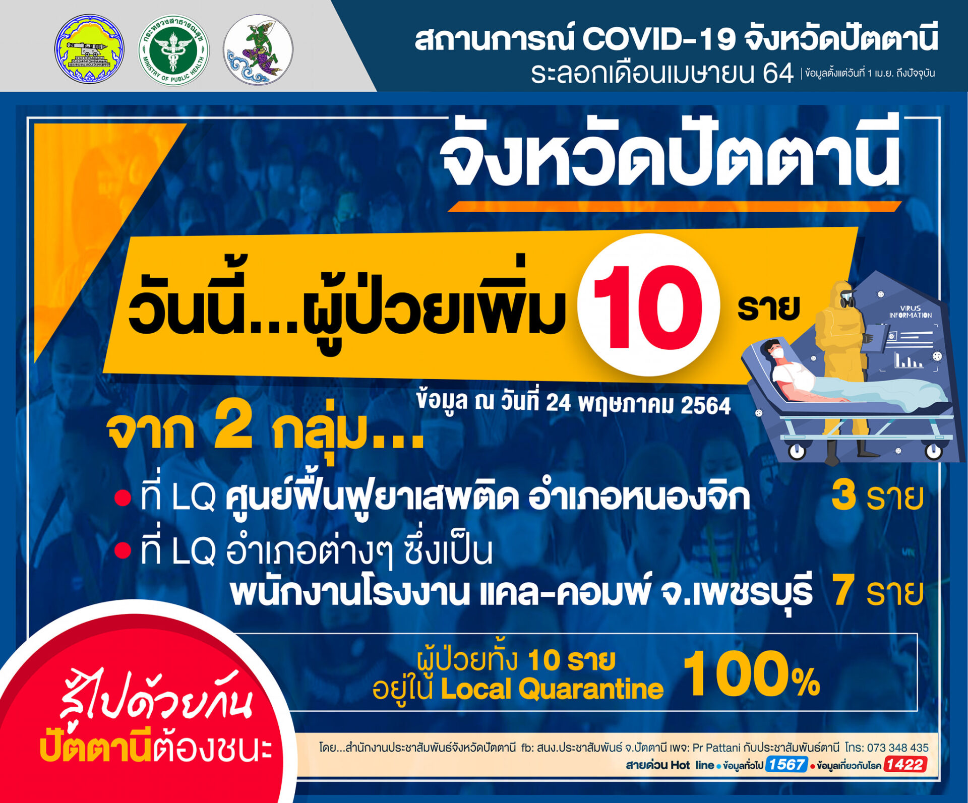 ปัตตานี 24 พ.ค. – ปัตตานีเร่งตรวจหาเชื้อโควิด-19 คลัสเตอร์โรงงานแคล-คอมพ์ฯ จำนวน 29 ราย พบติดเชื้อ 3 ราย