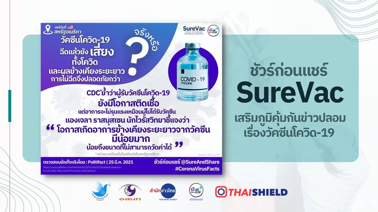 - แองเจลา ราสมุสเซน นักไวรัสวิทยาชี้แจงว่าโอกาสเกิดอาการข้างเคียงระยะยาวจากวัคซีนน้อยมาก น้อยถึงขนาดที่ไม่สามารถวัดค่าได้