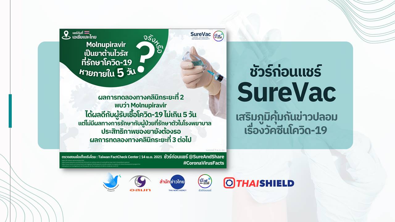ขณะที่สรรพคุณของยายังอยู่ในการทดลอง การอ้างว่า Molnupiravir สามารถกำจัดเชื้อโควิด 19 ได้ภายใน 5 วันจึงเป็นข้ออ้างไม่มีหลักฐานยืนยัน