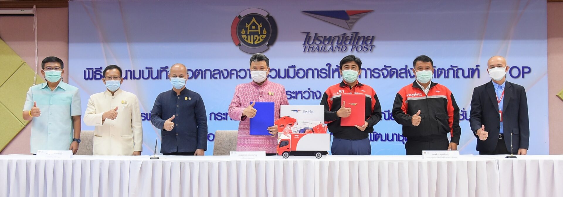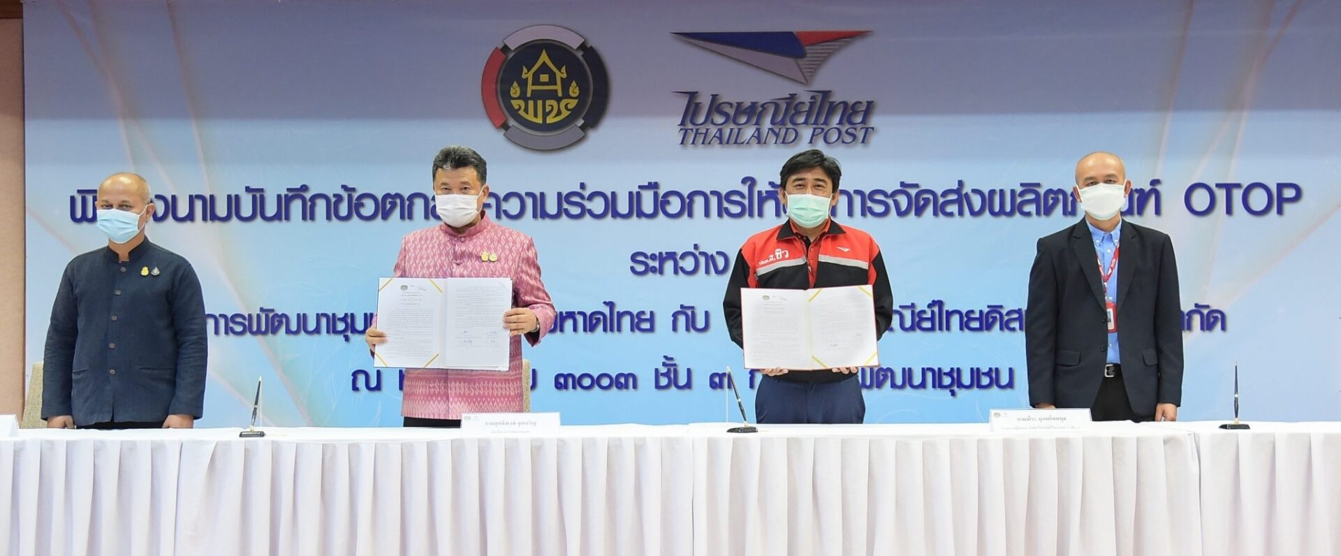 นาย สุทธิพงษ์ จุลเจริญ อธิบดีกรมการพัฒนาชุมชน กระทรวงมหาดไทย ร่วมลงนามในบันทึกข้อตกลงความร่วมมือ (MOU) กับนายพีระ อุดมกิจสกุล กรรมการผู้จัดการบริษัท ไปรษณีย์ไทยดิสทริบิวชั่น จำกัด (ปณท.ดบ.) ซึ่งเป็นบริษัทในเครือของบริษัท ไปรษณีย์ไทย จำกัดกับ เพื่อให้บริการจัดส่งผลิตภัณฑ์ OTOP ของผู้ผลิต ผู้ประกอบการไปยังลูกค้าที่สั่งซื้อผลิตภัณฑ์ทั่วประเทศ ด้วยบริการที่ครบวงจร ช่วยลดต้นทุน และลดภาระการขนส่ง โดยมีนายพงษ์ทร วิเศษสุวรรณ รองกรรมการผู้จัดการใหญ่ ด้านธุรกิจขนส่งและโลจิสติกส์ สายงานธุรกิจองค์กร บริษัทไปรษณีย์ไทย จำกัดร่วมเป็นสักขีพยาน
