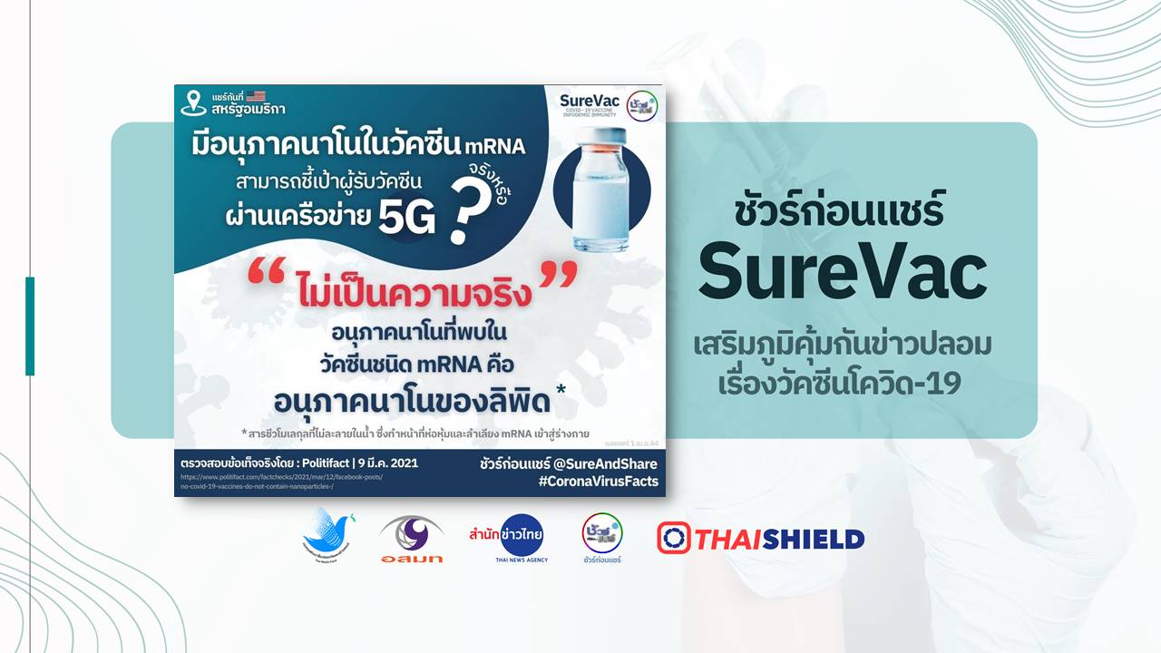 ส่วนอนุภาคนาโนที่ทำหน้าที่เป็นไมโครชิปหรือเชื่อมต่อกับเครือข่าย 5G นั้น เป็นการกล่าวอ้างที่ไม่เป็นความจริงแต่อย่างใด