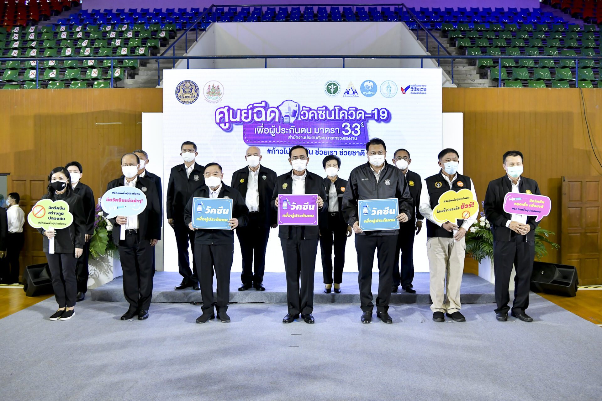 พล.อ.ประยุทธ์ จันทร์โอชา นายกรัฐมนตรีและรัฐมนตรีว่าการกระทรวงกลาโหมตรวจเยี่ยมศูนย์ฉีดวัคซีนผู้ประกันตนมาตรา 33 ในพื้นที่กรุงเทพมหานคร ณ อาคารกีฬาเวสน์ 1 สนามกีฬาไทย-ญี่ปุ่น เขตดินแดง กรุงเทพมหานคร โดยมีนายสุชาติ ชมกลิ่น รัฐมนตรีว่าการกระทรวงแรงงาน พร้อมคณะผู้บริหารกระทรวงแรงงาน ร่วมให้การต้อนรับ นายกรัฐมนตรีรับฟังบรรยายสรุปแผนการฉีดวัคซีนให้กับผู้ประกันตนตามมาตรา 33 ของกระทรวงแรงงานที่ดำเนินการในช่วงที่ผ่านมา จากนั้นเยี่ยมชมกระบวนการฉีดวัคซีน พร้อมทั้งให้กำลังใจบุคลากรทางการแพทย์ที่ปฏิบัติหน้าที่และทักทายผู้ที่มารับวัคซีนอย่างเป็นกันเอง