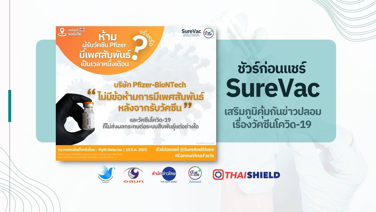 บริษัท Pfizer-BioNTech ไม่มีข้อห้ามการมีเพศสัมพันธ์หลังจากรับวัคซีน และวัคซีนโควิด 19 ก็ไม่ส่งผลกระทบต่อระบบสืบพันธุ์แต่อย่างใด