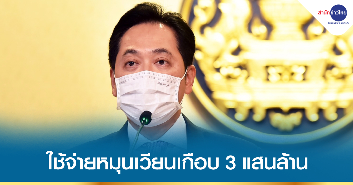 ทำเนียบฯ 9 มิ.ย.-โฆษกรัฐบาล เผยโครงการ “เราชนะ” และ “ม33 เรารักกัน” มีมูลค่าการใช้จ่ายหมุนเวียนในระบบเศรษฐกิจแล้วเกือบ 300,000 ล้านบาท จากการใช้จ่ายของประชาชนกว่า 41 ล้านคน