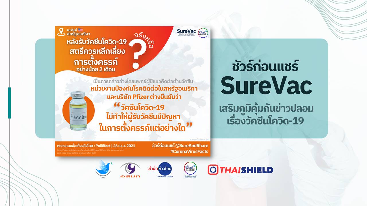 - หน่วยงานป้องกันโรคติดต่อในสหรัฐอเมริกาและบริษัท Pfizer ต่างยืนยันว่าวัคซีนโควิด 19 ไม่ทำให้ผู้รับวัคซีนมีปัญหาในการตั้งครรภ์แต่อย่างใด