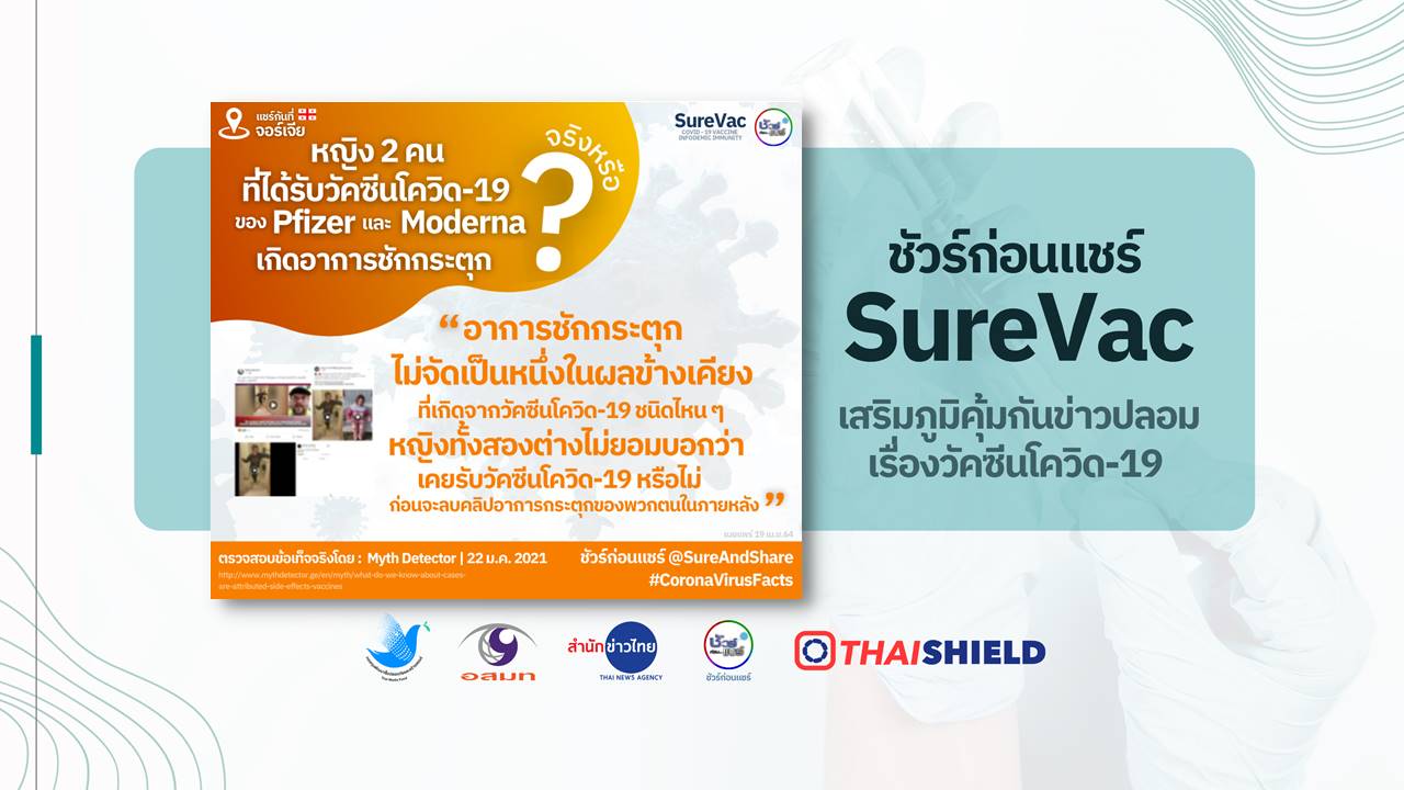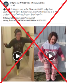 มีการเผยแพร่คลิปวิดีโอผ่านทาง Facebook ในสหรัฐอเมริกา โดยผู้โพสต์วิดีโออ้างว่าผู้หญิงสองคนที่อยู่ในคลิปเพิ่งผ่านการฉีดวัคซีนโควิด 19 ของบริษัท Pfizer และ Moderna แต่พอกลับถึงบ้านก็มีอาการสั่นรุนแรงคล้ายอาการชักกระตุก ทำให้การพูดและการขยับตัวลำบากจนควบคุมตัวเองไม่ได้