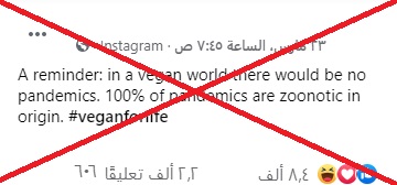 เป็นความเข้าใจผิดที่เผยแพร่ทาง Facebook ของ Moby ศิลปินแนวอิเล็กทรอนิก มิวสิคและนักเรียกร้องสิทธิสัตว์ชาวอเมริกัน โดยอ้างว่า ถ้าคนทั่วโลกหันมาเป็นมังสวิรัติ โรคระบาดจะหมดไปจากโลก เพราะโรคระบาดทั้งหมดมาจากการติดเชื้อจากสัตว์สู่คน