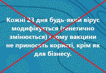 มีข้อความเผยแพร่บนสื่อสังคมออนไลน์ในประเทศยูเครนว่า ไวรัสทุกชนิดจะกลายพันธุ์ทุกๆ 23 วัน ดังนั้นการป้องกันการติดเชื้อด้วยการฉีดวัคซีนจึงไม่ได้ผล