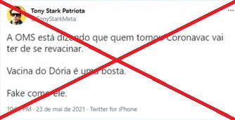 มีข้อมูลเท็จเผยแพร่ผ่านทาง Twitter ในประเทศบราซิล โดยอ้างว่า องค์การอนามัยโลก (WHO) แนะนำให้ผู้ที่ฉีดวัคซีนโควิด 19 ของบริษัท Sinovac ครบ 2 โดสแล้ว เข้ารับการฉีดวัคซีนโดสที่ 3 เพิ่มเติม เนื่องจากวัคซีนมีประสิทธิผลไม่เพียงพอ จนมีผู้เข้ามากดไลค์ข้อความกว่า 3,100 ครั้ง