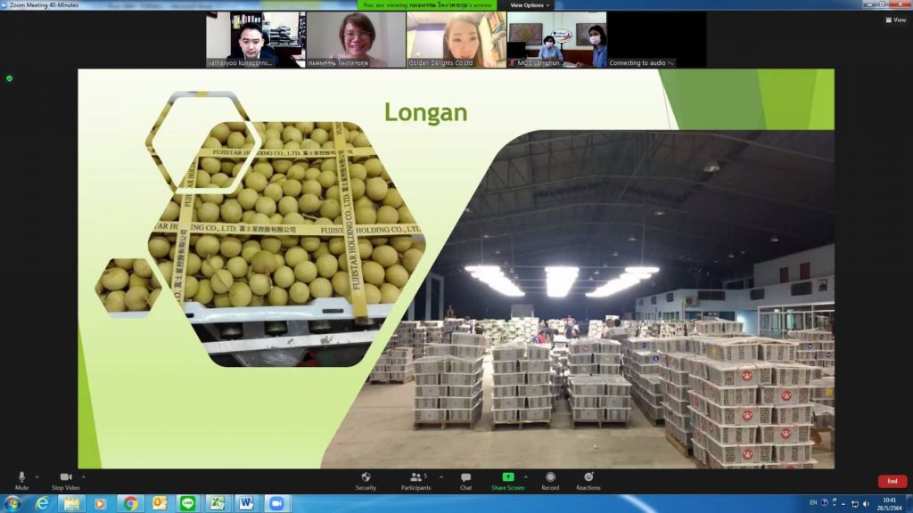 นางชณันภัสร์ พิศาลอภิพงศ์ ผู้อำนวยการสำนักงานส่งเสริมการค้าในต่างประเทศ ณ เมืองฮ่องกง กล่าวว่า การจัดงานครั้งนี้ สำนักงานฯ ได้ร่วมมือกับสำนักงานพาณิชย์จังหวัดจำนวน 13 แห่ง ได้แก่ เชียงใหม่ ลำพูน นนทบุรี ปทุมธานี ปราจีนบุรี สมุทรสาคร นครปฐม ระยอง ตราด จันทบุรี ประจวบคีรีขันธ์ นครศรีธรรมราช และชุมพร สร้างโอกาสทางธุรกิจให้แก่เกษตรกรผู้ปลูกผลไม้ไทย เช่น มะม่วงน้ำดอกไม้ มะม่วงจักรพรรดิ์แดง มะพร้าว ส้มโอ และผลไม้แปรรูปอาทิ ลำใยอบแห้ง มะพร้าวอบกรอบ (Coconut Chip) และข้าวตัง (Rice Cracker) ผ่านกิจกรรมเจรจาธุรกิจผ่านระบบออนไลน์ จำนวน 39 รอบ กับผู้นำเข้าผลไม้รายสำคัญในฮ่องกง