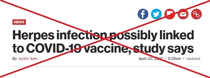 แต่การที่หนังสือพิมพ์ New York Post รายงานว่าวัคซีนโควิด 19 ทำให้เป็นโรคงูสวัด จนมีคนนำข้อความไปแชร์ต่อกันอย่างแพร่หลาย เป็นข้อความที่สร้างความเข้าใจผิด เนื่องจากคนที่จะป่วยเป็นโรคงูสวัดได้ ต้องมีเชื้อไวรัสวาริเซลลา ซอสเตอร์ (Varicella Zoster Virus) ซึ่งเป็นเชื้อก่อโรคงูสวัดอยู่ในร่างกายอยู่ก่อนแล้ว