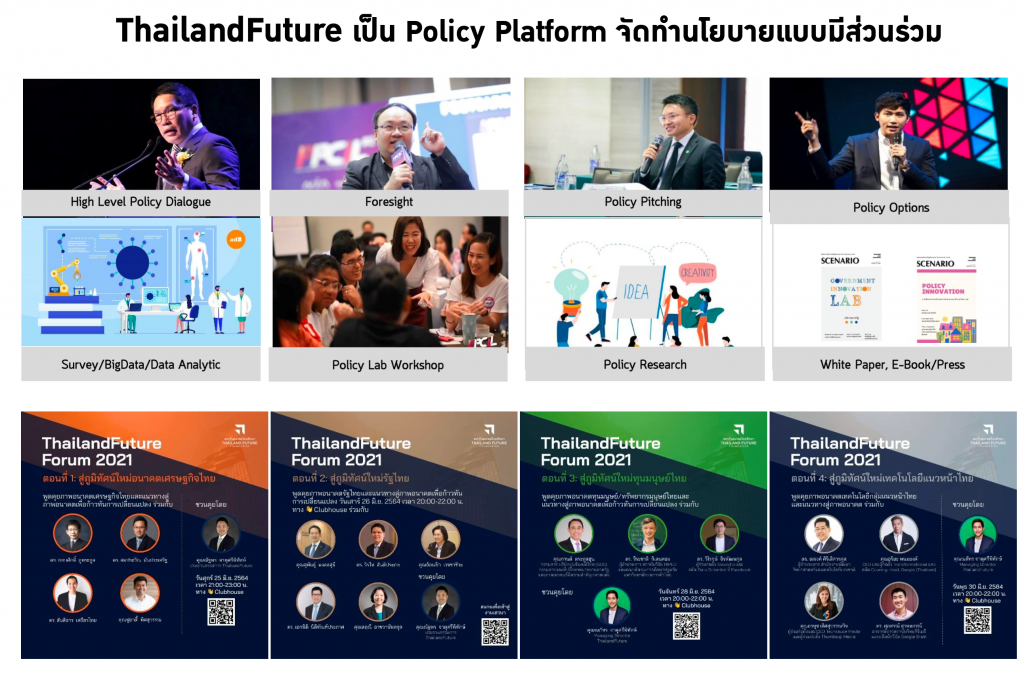 นายณภัทร เสนอแนวคิด “ไตรลักษณ์นโยบายอนาคต” เพื่อนำประยุกต์ใช้ช่วยพาไทยรอดพ้นวิกฤตและเท่าทันโลกยุค VUCA เริ่มจากอันดับแรก กระบวนการคิดการทำนโยบายต้องเปิดกว้างและเชื่อมต่อกับโลกภายนอกมากขึ้น เป็นการ “ปลดล็อก” ห้องออกแบบนโยบาย เชื่อมต่อมันเข้ากับประชาชน ท้องถิ่น และผู้มีส่วนได้ส่วนเสียตลอดทุกข้อต่อของห่วงโซ่นโยบาย (Policy Chain) เพื่อให้ทุกฝ่ายร่วมแก้ปัญหา ข้อจำกัด หาทางออกด้วยนวัตกรรมนโยบายใหม่ ๆ ล่าสุด ThailandFuture ได้ร่วมมือกับสำนักงานตำรวจแห่งชาติ และสำนักงานสภานโยบายการอุดมศึกษาฯ (Safe City) ดึงเจ้าหน้าที่ตำรวจรุ่นใหม่ระดับผู้กำกับและสารวัตร ทั้งส่วนกลางและส่วนภูมิภาค ร่วมกันทดลองต้นแบบนโยบายจาก Policy Lab เช่น เปิดให้ประชาชน แจ้งความออนไลน์ หนุนตำรวจบ้าน ตำรวจประจำชุมชน โดยใช้เทคโนโลยี 4.0 มาใช้ในงานภาคสนาม การพัฒนาด่านตรวจให้โปร่งใส เป็นมิตรกับประชาชน