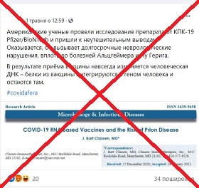บทความนี้ถูกตีพิมพ์ในวารสารการแพทย์ Microbiology & Infectious Diseases เจ้าของบทความได้แก่ จอห์น บาร์ท คลาสเซน นักภูมิคุ้มกันวิทยาและเป็นนักเคลื่อนไหวต่อต้านการฉีดวัคซีนชาวอเมริกัน ที่อ้างว่า ส่วนประกอบในวัคซีนโควิด 19 ของ Pfizer ก่อให้เกิดการม้วนพับโปรตีนจนมีรูปร่างผิดปกติ (Protein Misfolding) นำไปสู่การทำลายระบบประสาทในระยะยาว และสามารถพัฒนาไปสู่การป่วยเป็นโรคสมองเสื่อม (Alzheimer’s) และโรคกล้ามเนื้ออ่อนแรง (ALS)