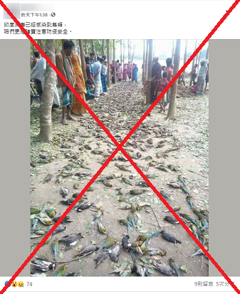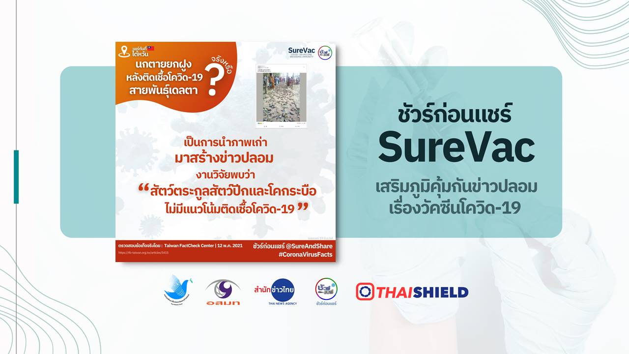 มีการบิดเบือนข้อเท็จจริงด้วยข้อความและรูปภาพบนสื่อสังคมออนไลน์ในไต้หวัน ที่อ้างว่าไวรัสโควิด 19 สายพันธุ์เดลต้าสามารถระบาดจากคนสู่นก จนมีนกตายยกฝูงในอินเดีย