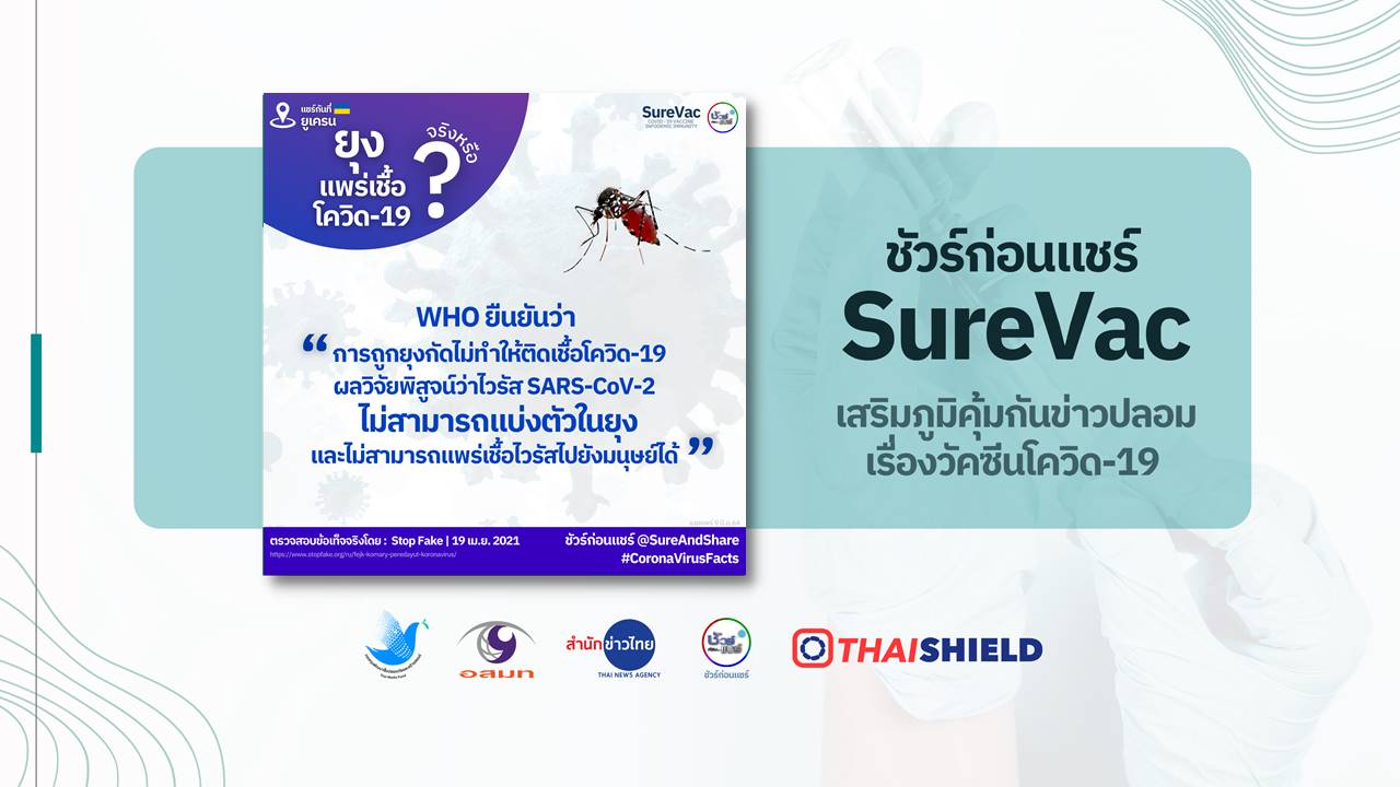 ในเว็บไซต์ขององค์การอนามัยโลก (WHO) ยืนยันว่าการถูกยุงกัดไม่สามารถทำให้ติดเชื้อโควิด 19 ได้