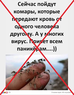 มีข้อมูลเท็จถูกนำมาเผยแพร่ทางสื่อสังคมออนไลน์ในประเทศยูเครน โดยอ้างว่ายุงสามารถนำเชื้อโควิด 19 จากเลือดของผู้ป่วยไปแพร่เชื้อยังคนทั่วไปได้