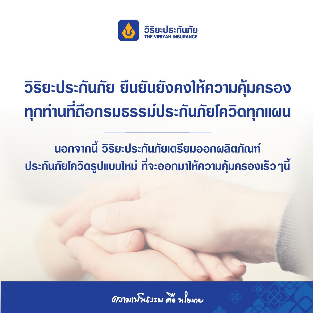 หลังจาก กรณี บริษัท สินมั่นคงประกันภัย ประกาศวันนี้ (16 ก.ค. )บอกเลิกกรมธรรม์ประกันภัยการติดเชื้อไวรัสโควิด-19 “เจอ จ่าย จบ” ในสื่อสังคมออนไลน์ ก็มีการแชร์ข้อมูลว่า บริษัท วิริยะประกันภัย จำกัด (มหาชน) ประกาศ ยกเลิกการรับประกันต่ออายุแบบประกันโควิดทุกแบบ ทุกแผน มีผลตั้งแต่วันศุกร์ที่ 16 ก.ค. เวลา 16.00 น. เป็นต้นไป ทุกช่องทางการขาย ล่าสุด วิริยะประกันภัย ออกมายืนยันยังไม่ได้ยกเลิกและยังคงให้ความคุ้มครองทุกท่านที่ถือกรมธรรม์ประภันภัยูควิดทุกแผน และเตรียมออกผลิตภัณฑ์รูปแบบใหม่ในเร็วๆนี้