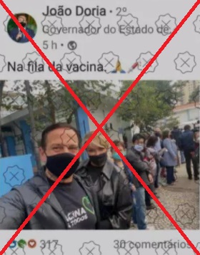 มีข้อมูลเท็จเผยแพร่ทาง Facebook ในประเทศบราซิล โดยอ้างว่า ชูเอา โดเรีย ผู้ว่าการรัฐเซา เปาโล ไปรอต่อคิวเพื่อฉีดวัคซีนโควิด 19 ของบริษัท Pfizer ทั้งๆ ที่เคยบอกว่าจะไปฉีดวัคซีนของ Sinovac จนมีผู้นำข้อความดังกล่าวไปแชร์กว่าพันครั้ง ก่อนจะถูก Facebook ตั้งสถานะให้เป็นข่าวปลอมในเวลาต่อมา