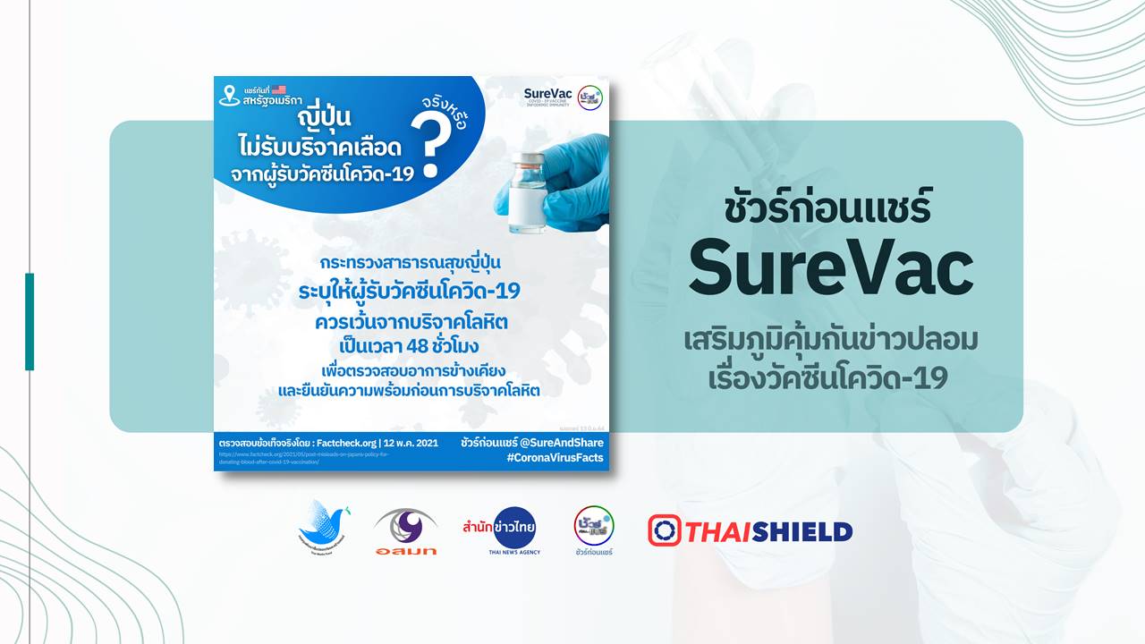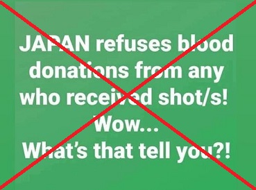 มีข้อมูลบิดเบือนเผยแพร่ทาง Facebook ในสหรัฐอเมริกา โดยอ้างว่าประเทศญี่ปุ่นไม่รับบริจาคโลหิตจากผู้ฉีดวัคซีนโควิด 19 เนื่องจากไม่มั่นใจในความปลอดภัย