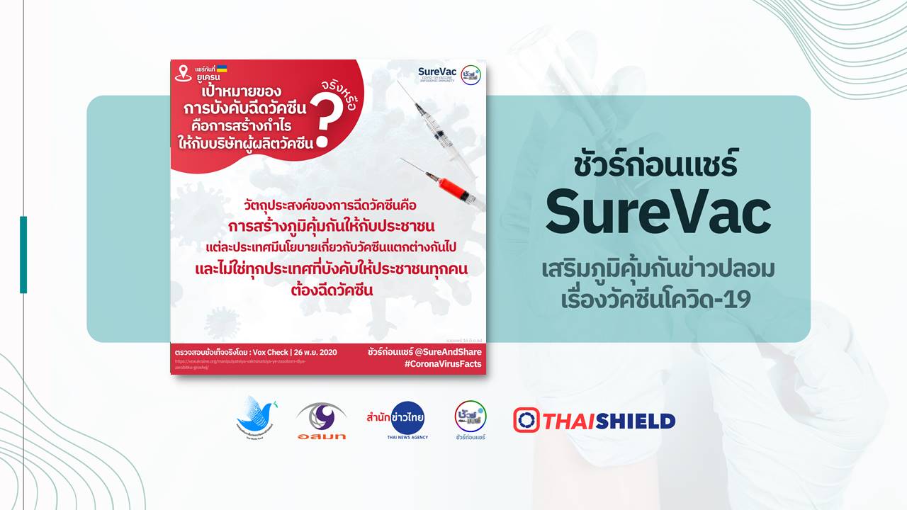 มีการเผยแพร่ข้อมูลเท็จผ่านอินโฟกราฟฟิคในประเทศยูเครน โดยเนื้อหาอ้างว่าเหตุผลที่แต่ละประเทศบังคับให้ประชาชนฉีดวัคซีน เพื่อสร้างกำไรให้กับบริษัทผู้ผลิตวัคซีนและผู้ที่เกี่ยวข้อง