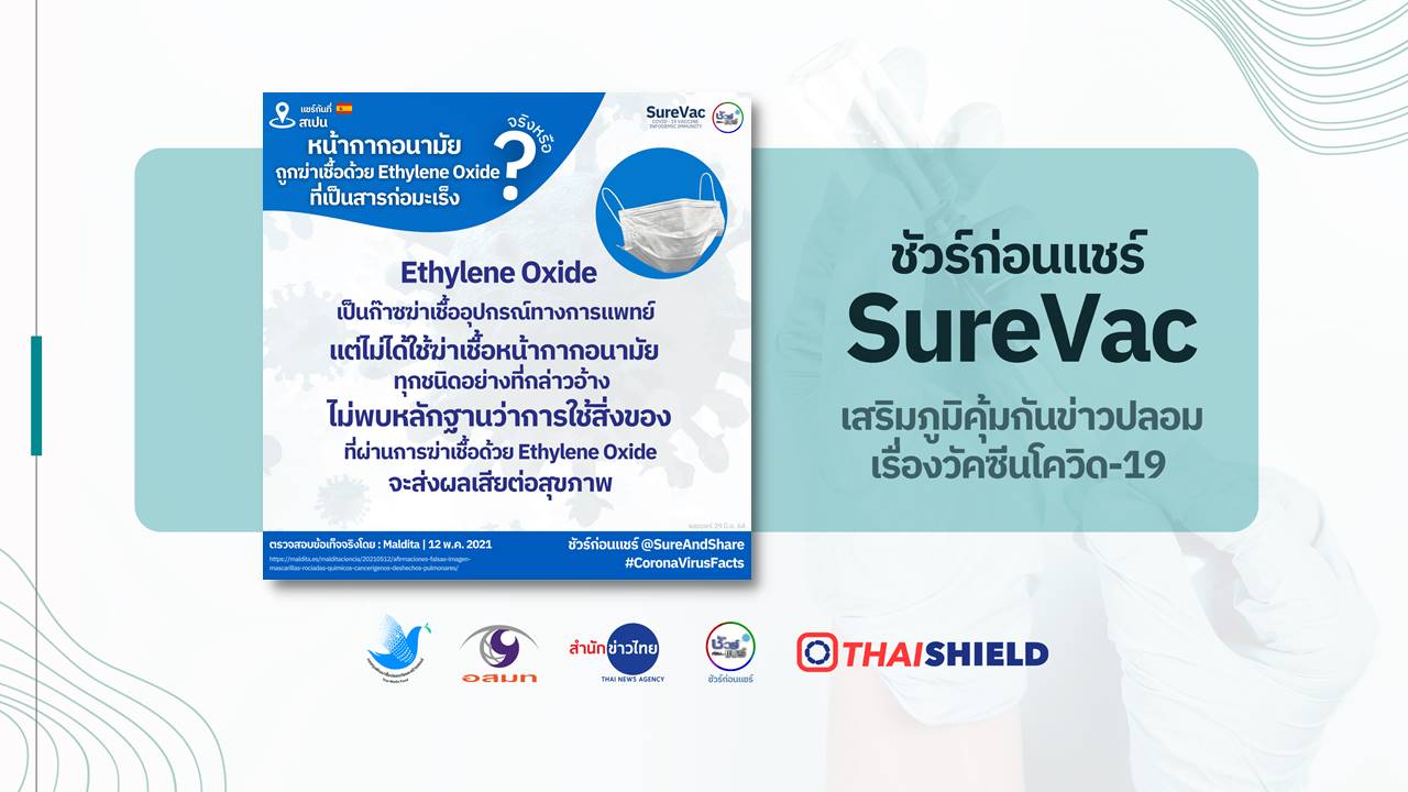 - Ethylene Oxide ใช้ฆ่าเชื้ออุปกรณ์ทางการแพทย์ แต่ไม่ได้ใช้ฆ่าเชื้อหน้ากากอนามัยทุกชนิดอย่างที่กล่าวอ้าง