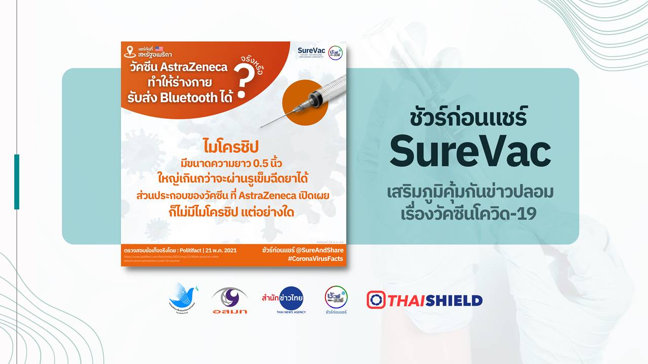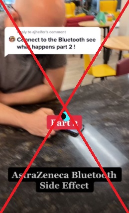มีคลิปวิดีโอเผยแพร่ข้อมูลเท็จผ่านทาง TikTok โดยผู้ที่อ้างว่าเข้ารับการฉีดวัคซีนโควิด 19 ของบริษัท AstraZeneca บอกว่าในวัคซีนมีไมโครชิป เมื่อฉีดเข้าไปแล้ว ทำให้ตัวเขาเชื่อมต่อสัญญาณ Bluetooth กับอุปกรณ์อิเล็กทรอนิกต่างๆ ได้โดยอัตโนมัติ และมีข้อความแสดงการเชื่อมต่อที่ระบุว่า Connecting to AstraZeneca_ChAdOx1-S
