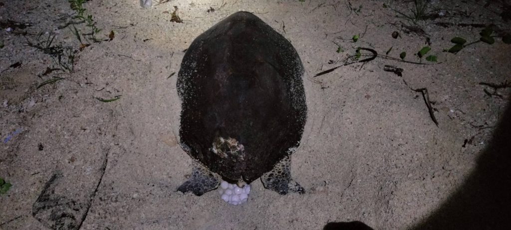 สำหรับขนาดหลุมรังไข่ไข่กว้าง 23 เซนติเมตร ลึก 43 เซนติเมตร ซึ่งเจ้าหน้าที่ขุดเพื่อย้ายรังไปไว้ในที่ซึ่งปลอดภัยจากสัตว์ที่จะเข้ามากินไข่เต่า รวมถึงป้องกันรังถูกน้ำทะเลท่วมถึงในช่วงเวลาน้ำทะเลขึ้นสูง โดยนับเป็นรังที่ 17 ของฤดูวางไข่ปีนี้ มี 197 ฟอง ทั้งนี้ เจ้าหน้าที่อุทยานแห่งชาติจะเฝ้าระวังและเก็บข้อมูลตลอด 24 ชั่วโมง