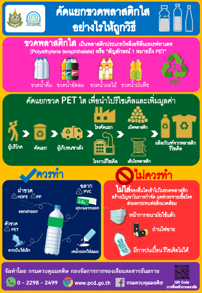 ทั้งนี้ประเทศไทยผลิตขวดพลาสติกเพื่อบรรจุน้ำดื่มประมาณ 4,400 ล้านขวดต่อปี หากขวดพลาสติกเหล่านี้ไม่มีการปนเปื้อนก็จะถูกนำกลับไปรีไซเคิลได้ 100 % ซึ่งเป็นไปตามเป้าหมายการนำพลาสติกภายในประเทศกลับไปใช้ประโยชน์เข้าสู่ระบบเศรษฐกิจหมุนเวียน (Circular Economy) ภายใต้การขับเคลื่อนการดำเนินงานตามแผนปฏิบัติการด้านการจัดการขยะพลาสติก ระยะที่ 1 (พ.ศ. 2563 – 2565) และ Roadmap การจัดการขยะพลาสติก พ.ศ. 2561 – 2573 จึงขอความร่วมมือส่งต่อคำแนะนำอย่างทั่วถึง เพื่อช่วยกันจัดการขยะหน้ากากอนามัยได้อย่างถูกวิธี ไม่เพิ่มความเสี่ยงอันตรายให้กับพนักงานเก็บขนขยะและปลอดภัยต่อสิ่งแวดล้อม. - สำนักข่าวไทย