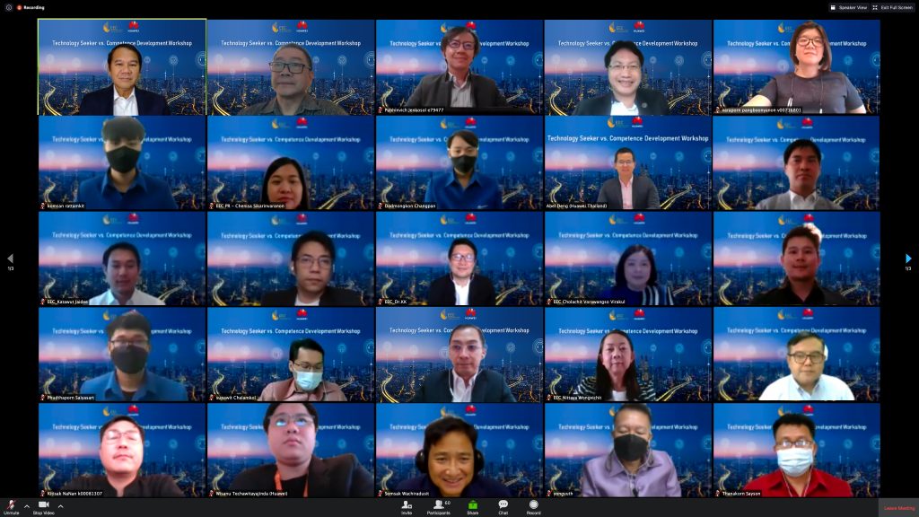 สำนักงานคณะกรรมการนโยบายเขตพัฒนาพิเศษภาคตะวันออก ( อีอีซี) ร่วมกับ และ หัวเว่ย อาเซียน อะคาเดมี และม.บูรพา จัดสัมมนาเชิงปฏิบัติการ (work shop) รูปแบบออนไลน์ หัวข้อ“Technology Seeker vs Competence Development Workshop” โดยมี ดร.คณิศ แสงสุพรรณ เลขาธิการ อีอีซี และ นายอาเบล เติ้ง (Mr. Abel Deng) ประธานกรรมการบริหาร บริษัท หัวเว่ย เทคโนโลยี (ประเทศไทย) จำกัด โดยมีผู้บริหารระดับสูง ผู้ประกอบการในพื้นที่อีอีซี กลุ่มเอสเอ็มอี และกลุ่มสตาร์ทอัพ เข้าร่วมงานเพื่อนำนวัตกรรมดิจิทัล 5G มาใช้พัฒนาบุคลากร