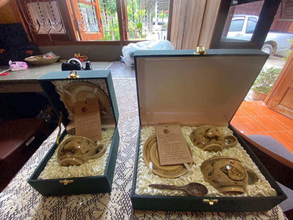 ส่วนเครื่องเคลือบเวียงกาหลง มีลักษณะเด่นในการขึ้นทะเบียน GI คือ ทนความร้อนสูง ผิวเรียบใสแต่ไม่มันเงา มีรอยแตกที่ผิวจากน้ำเคลือบ ดินที่ใช้ในการผลิต เป็นดินขาวเนื้อละเอียด มีความหนืดสูงคล้ายผงชอล์ก และดินดำเป็นดินที่อยู่ใต้ชั้นดินทราย สีดำแกมเทา มีความละเอียดสูง และมีทรายปนเล็กน้อย ซึ่งเป็นดินในพื้นที่ตำบลเวียงกาหลงเชียงรายหรือพื้นที่ข้างเคียงเท่านั้น ด้วยกรรมวิธีการเผา ทำให้ได้ผลิตภัณฑ์ที่มีพื้นผิวสีเขียวอมฟ้า เขียวไข่กา หรือขาวอมเหลือง โดยมีการเขียนสีด้วยสีธรรมชาติ เป็นลวดลายเป็นเอกลักษณ์