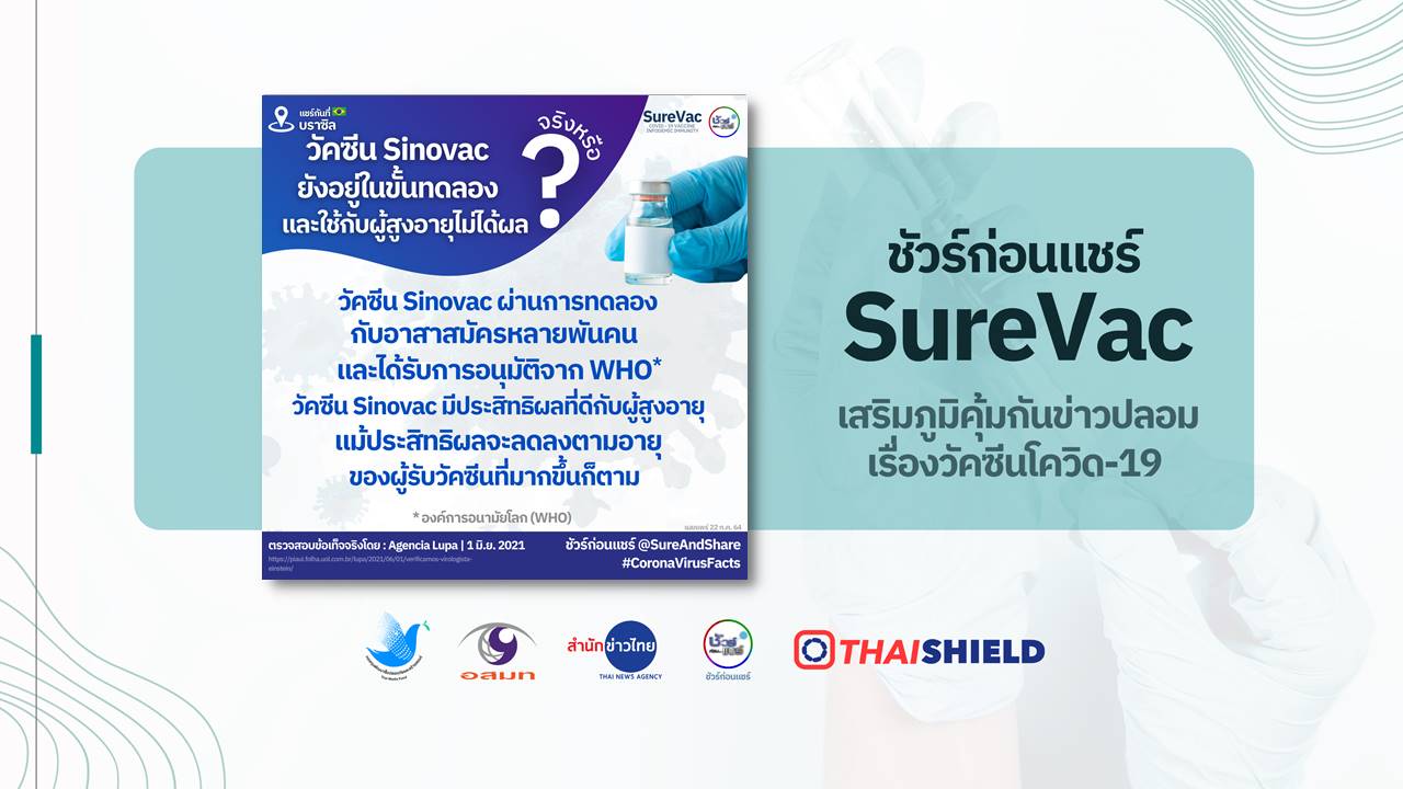 - Sinovac ไม่เปิดเผยข้อมูลด้านความปลอดภัยของวัคซีน คนที่รับวัคซีนจึงไม่ต่างจากอาสาสมัครทดลองยา เพราะยังไม่รู้ว่าในอนาคตจะเกิดอาการข้างเคียงเช่นไรบ้าง วัคซีนยังอยู่ในระหว่างการทดลอง ไม่มีใครรู้ว่าจะป้องกันโรคได้มากน้อยแค่ไหน – ข้อมูลเท็จ