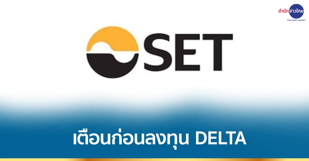 กรุงเทพฯ 6 ส.ค. – SET เตือนผู้ลงทุนระมัดระวังก่อนลงทุน DELTA หลังการซื้อขายมีความผันผวน