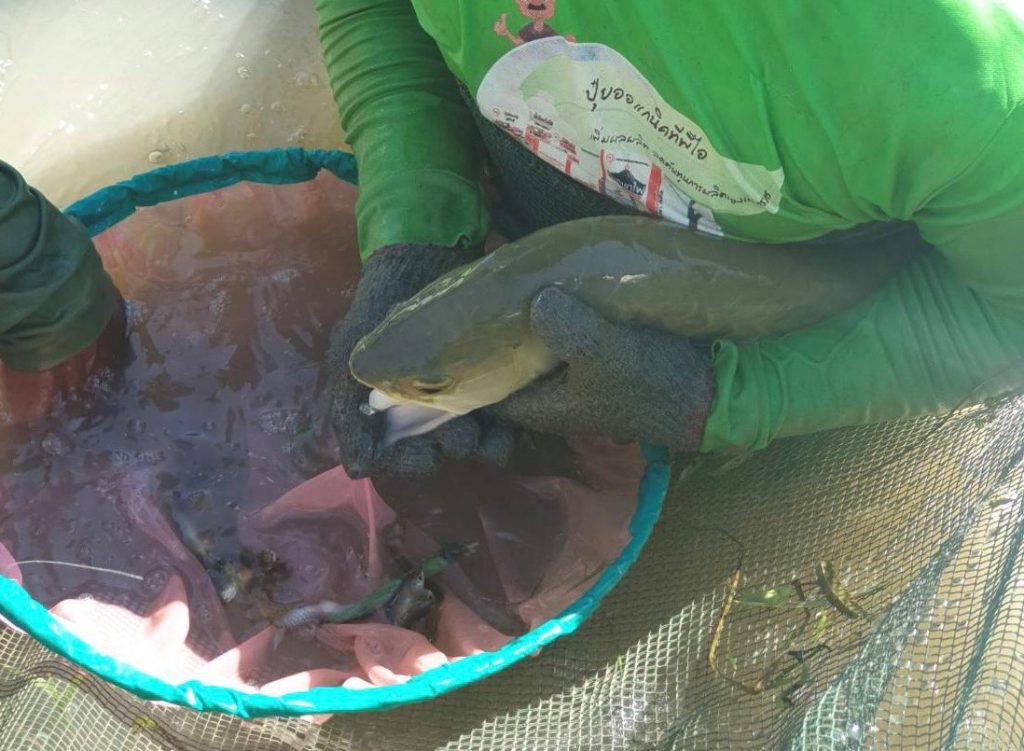 สุราษฎร์ธานี 6 ส.ค. -กรมประมงใช้เวลาเพาะพันธุ์ “ปลาตะพัดเขียว” สัตว์น้ำหายากนานกว่า 20 ปี ล่าสุดปล่อยสู่เขื่อนรัชชประภา 200 ตัว กลับคืนถิ่นอาศัยเดิม เพื่อเฉลิมพระเกียรติพระบรมราชชนนีพันปีหลวง