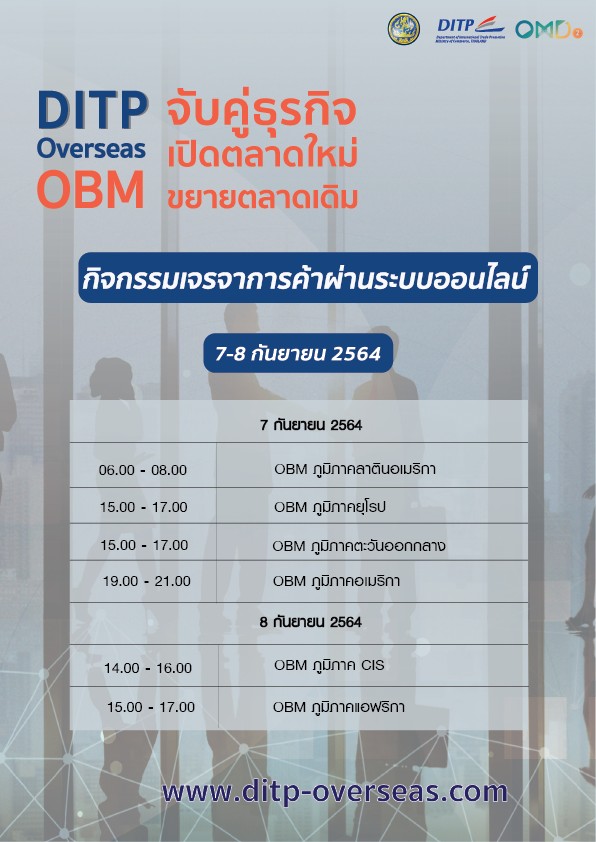 ตามแนวทางให้ผู้ส่งออกไทยได้มีโอกาสเจรจาการค้าผ่านช่องทางออนไลน์กับผู้นำเข้ารายสำคัญในแต่ละภูมิภาคในช่วงของสถานการณ์การแพร่ระบาดของโควิด 19 ที่ทำให้การเดินทางไปเจรจาการค้าในต่างประเทศยังไม่สามารถดำเนินการได้ตามปกติ ในวันที่ 3 สิงหาคม 2564 โดยผ่านระบบออนไลน์