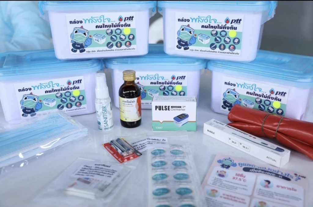 สำหรับผู้ป่วยระดับสีเขียวที่ตรวจพบสามารถทำการดูแลตนเองเบื้องต้นที่บ้านหรือในชุมชน (Home or Community Isolation) โดยจะได้รับมอบ “กล่องพลังใจ คนไทยไม่ทิ้งกัน” ประกอบไปด้วยชุดอุปกรณ์การทางแพทย์และยาที่จำเป็น รวมทั้งระบบติดตามอาการ