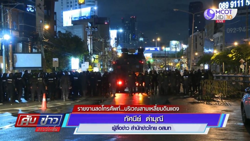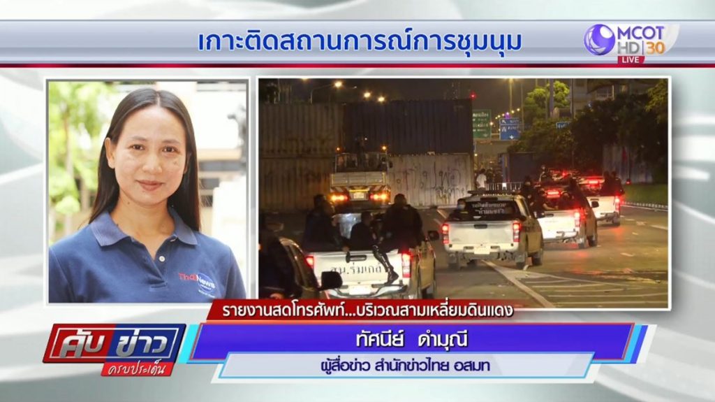 ล่าสุดเมื่อเวลาประมาณ 21.50 น. เจ้าหน้าที่ตำรวจเข้ามาลาดตระเวนตรวจสอบพื้นที่ บริเวณสามเหลี่ยมดินแดง เตรียมเปิดการจราจรอย่างเป็นทางการ หลังสถานการณ์เข้าสู่ภาวะปกติแล้ว. – สำนักข่าวไทย