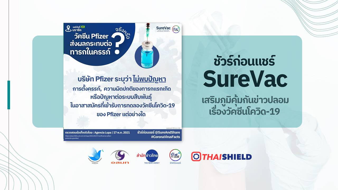 การศึกษาข้อมูลล่าสุดของบริษัท Pfizer ระบุว่า ไม่พบปัญหาการตั้งครรภ์, ความผิดปกติของทารกแรกเกิด หรือปัญหาต่อระบบสืบพันธุ์ในอาสาสมัครที่เข้ารับการทดลองวัคซีนโควิด 19 ของ Pfizer แต่อย่างใด และยืนยันว่าวัคซีนของ Pfizer มีความปลอดภัยกับสตรีมีครรภ์