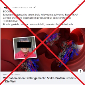 มีข้อมูลเท็จเผยแพร่บนสื่อสังคมออนไลน์ในประเทศจอร์เจีย โดยอ้างว่าโปรตีนหนามจากวัคซีนโควิด 19 เป็นอันตรายต่อร่างกายไม่ต่างจากโปรตีนหนามของไวรัสโควิด 19 สามารถก่อให้เกิดโรคกล้ามเนื้อหัวใจอักเสบและภาวะข้อต่ออักเสบ โปรตีนหนามเหล่านี้จะไม่อยู่เฉพาะบริเวณที่ฉีดยา แต่จะเข้าสู่กระแสเลือดและแพร่กระจายไปทั่วร่างกาย เข้าไปในเซลล์ไข่ทำให้ระบบสืบพันธุ์บกพร่อง และยังอยู่ในน้ำนมของแม่ที่ให้นมบุตรอีกด้วย
