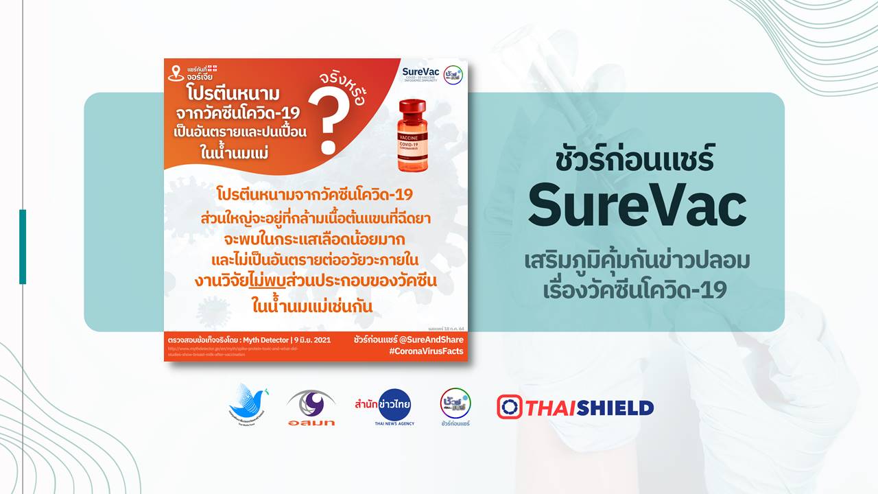 ส่วนข้ออ้างที่ว่าโปรตีนหนามจากวัคซีนโควิด 19 ปะปนในน้ำนมมารดาก็ไม่เป็นความจริงเช่นกัน
