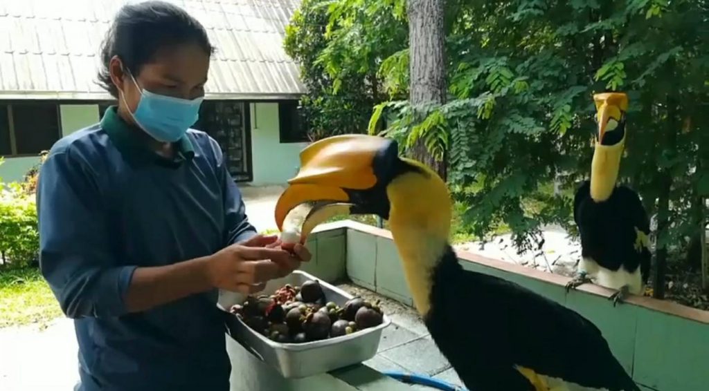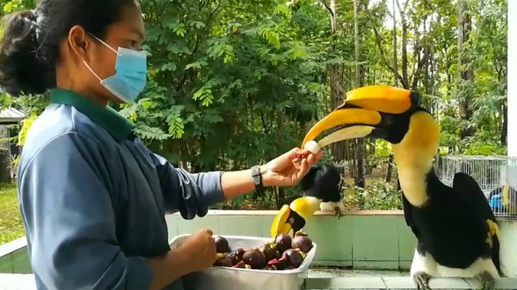อุทัยธานี 24 ส.ค. – สถานีเพาะเลี้ยงสัตว์ป่าห้วยขาแข้งเผยภาพน่ารักๆ ของ “น้องกกหนึ่ง” นกกกที่ถูกพรากแม่ ซึ่งทางสถานีเลี้ยงมา 4 ปีแล้ว น้องกกหนึ่งโชว์ลีลารับผลไม้เข้าปาก เพื่อเป็นส่วนหนึ่งในการรณรงค์ “นกกก” ซึ่งเป็นจำพวกนกเงือกที่มีขนาดใหญ่ที่สุด