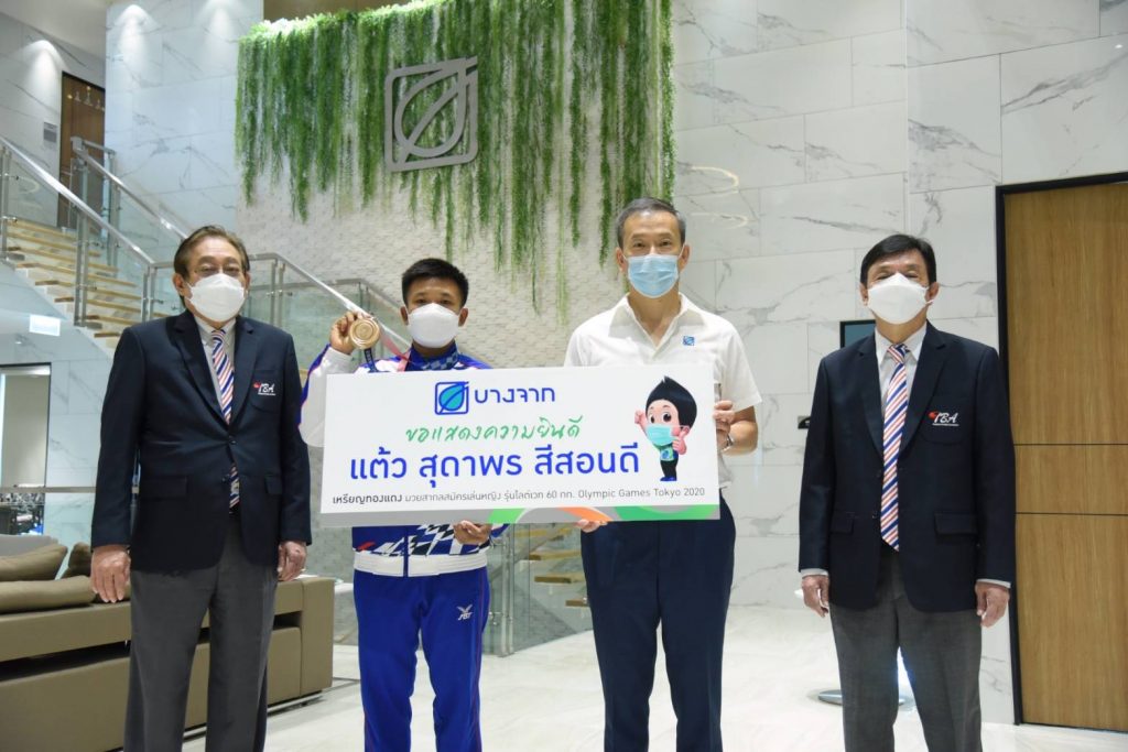 นายพิชัย ชุณหวชิร ประธานกรรมการ บริษัท บางจาก คอร์ปอเรชั่น จำกัด (มหาชน) ในฐานะนายกสมาคมกีฬามวยสากลแห่งประเทศไทย กล่าวว่า บางจากฯ ร่วมแสดงความยินดี พร้อมมอบเงินรางวัลสนับสนุน 2 ล้านบาท แก่ นส.สุดาพร สีสอนดี หรือ น้องแต้ว นักกีฬามวยสากลทีมชาติไทย ที่ได้รับรางวัลเหรียญทองแดง จากการแข่งขันกีฬาโอลิมปิกเกมส์ 2020 ครั้งที่ 32 ณ ประเทศญี่ปุ่น