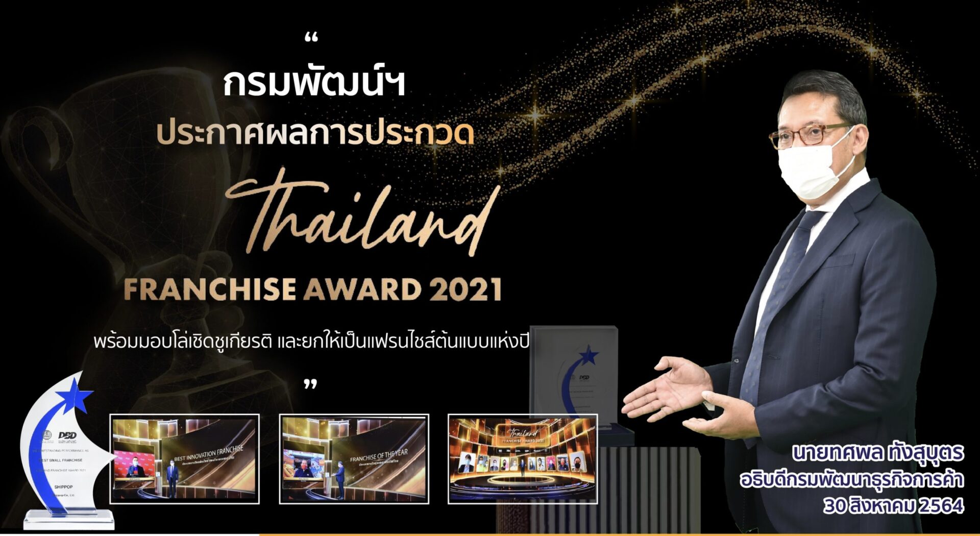 นายทศพล ทังสุบุตร อธิบดีกรมพัฒนาธุรกิจการค้าเปิดเผยว่าในช่วงเดือนพฤษภาคมที่ผ่านมากรมพัฒนาธุรกิจการค้า ได้เปิดรับสมัครธุรกิจแฟรนไชส์เข้าร่วมประกวด ‘รางวัลธุรกิจแฟรนไชส์ไทยประจำปี 2564 หรือ Thailand Franchise Award 2021 : TFA 2021’ โดยธุรกิจที่สมัครเข้าร่วมการประกวดต้องดำเนินกิจการเป็นธุรกิจที่มีการจดทะเบียนนิติบุคคลเป็นแฟรนไชส์ซอร์ (Franchisor) และเป็นธุรกิจที่จดทะเบียนเครื่องหมายการค้าถูกต้องตามกฎหมาย ซึ่งมีธุรกิจแฟรนไชส์สนใจสมัครเข้าร่วมจำนวน 37 แบรนด์ แต่ผ่านเกณฑ์การพิจารณาคัดเลือกอย่างเข้มข้นจากคณะกรรมการ จำนวน 10 แบรนด์