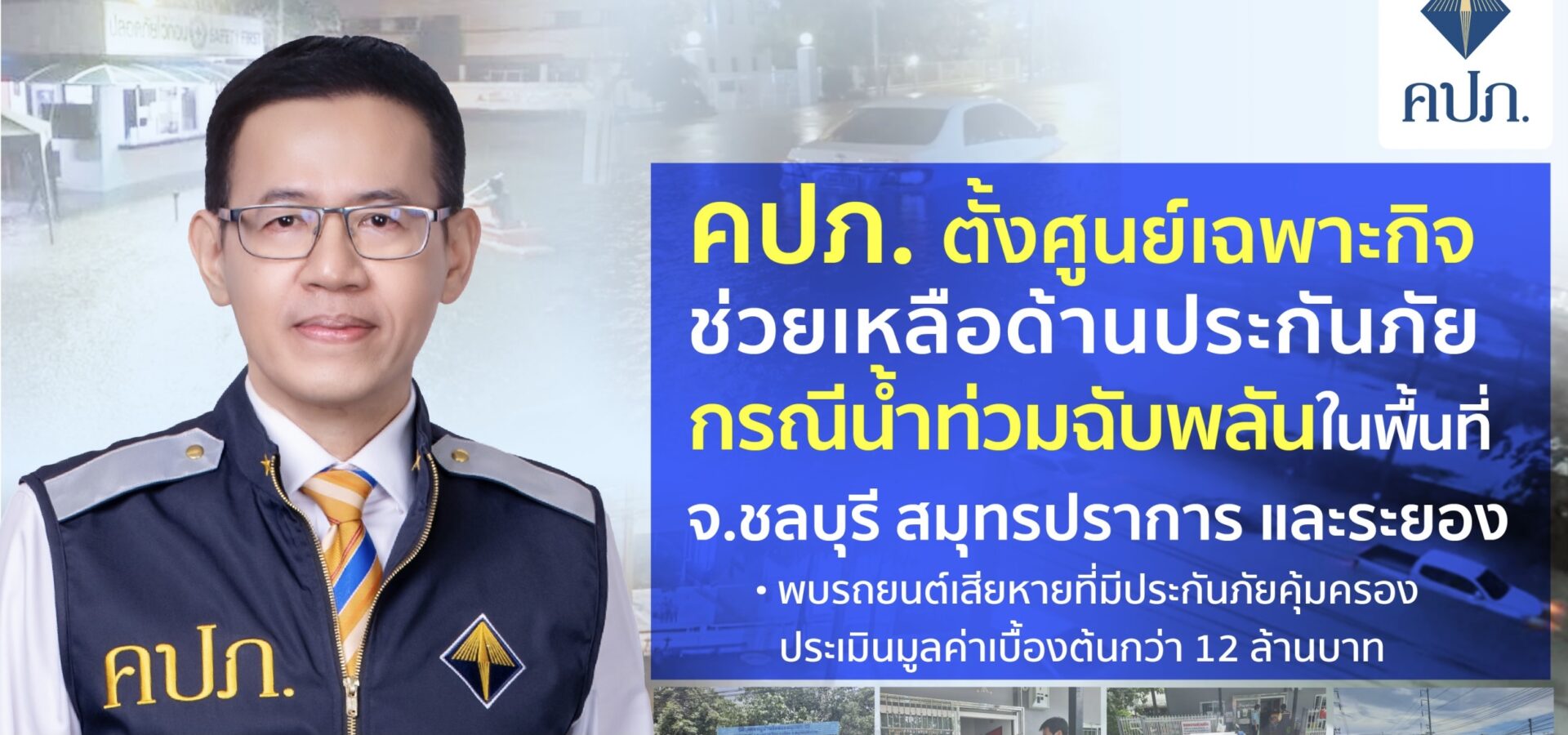 ทั้งนี้ ในส่วนของความเสียหายที่เกี่ยวกับบ้านเรือน ที่อยู่อาศัย พืชผลทางการเกษตร และทรัพย์สินอื่น ๆ ประชาชนอยู่ระหว่างตรวจสอบความเสียหายและข้อมูลการทำประกันภัย โดยมอบหมายให้สำนักงาน คปภ. ภาค 6 (ชลบุรี) ตั้งศูนย์เฉพาะกิจด้านประกันภัยในพื้นที่ เพื่ออำนวยความสะดวกแก่ประชาชนที่ได้รับความเดือดร้อนในการเคลมประกันน้ำท่วม มีผู้อำนวยการภาคอาวุโส สำนักงาน คปภ. ภาค 6 (ชลบุรี) เป็นหัวหน้าศูนย์เฉพาะกิจฯ หมายเลขโทรศัพท์ 093-129-9462 สำหรับในส่วนเสียหายของรถยนต์ที่มีประกันภัยคุ้มครองและแจ้งเคลมความเสียหายกับบริษัทประกันภัยแล้ว จะติดตามเพื่อให้การชดใช้ค่าสินไหมทดแทนให้กับผู้เอาประกันภัยเป็นไปโดยเร็วและเป็นธรรม