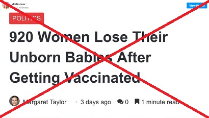 มีข่าวปลอมเผยแพร่ในสหรัฐอเมริกาผ่าน Instagram ของ แชนนอน โครเนอร์ นักจิตวิทยาคลินิก ที่อ้างว่าการฉีดวัคซีนโควิด 19 เป็นสาเหตุให้สตรีมีครรภ์ในสหราชอาณาจักรแท้งลูก 920 ครั้ง และสตรีมีครรภ์ในสหรัฐอเมริกาแท้งลูก 571 ครั้ง
