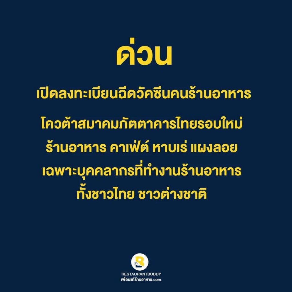 สำหรับร้านที่สะดวกให้พนักงานมาฉีดที่ศูนย์บางซื่อ. สามารถลงทะเบียนฉีดวัคซีน.>> https://bit.ly/3jJ1W01 หลังจากนั้น รอรับSMS นัดหมาย และแอดไลน์วัคซีนสมาคมฯเพื่อสอบถามข้อมูล รับแจ้งวันนัด Line ID @thairestaurant.-สำนักข่าวไทย