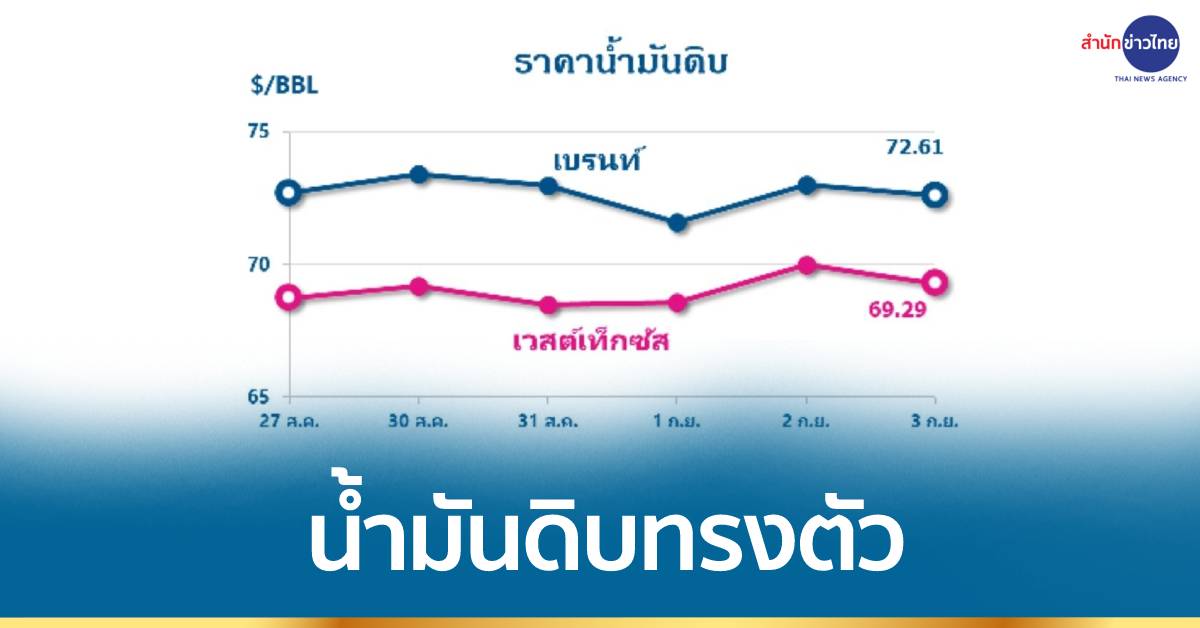 สำหรับสถานการณ์ราคาน้ำมันในสัปดาห์ที่ผ่านมา (30 ส.ค. – 3 ก.ย. 64) ราคาน้ำมันดิบเวสต์เท็กซัสในสัปดาห์ที่ผ่านมาปรับเพิ่มขึ้น 0.55 เหรียญสหรัฐฯ ต่อบาร์เรล มาอยู่ที่ 69.29 เหรียญสหรัฐฯ ต่อบาร์เรล เช่นเดียวกันกับราคาน้ำมันดิบเบรนท์ปรับลดลง 0.09 เหรียญสหรัฐฯ ต่อบาร์เรล มาอยู่ที่ 72.61 เหรียญสหรัฐฯ ต่อบาร์เรล ส่วนราคาน้ำมันดิบดูไบปิดเฉลี่ยอยู่ที่ 71.50 เหรียญสหรัฐฯ ต่อบาร์เรล