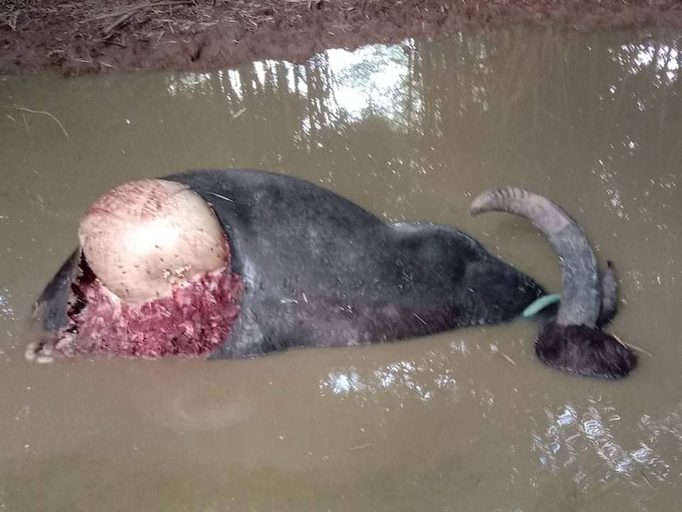 เจ้าหน้าที่ได้รับแจ้งจากเจ้าของกระบือเมื่อวันที่ 1 กันยายน ว่า กระบือแม่ลูกอ่อนที่เลี้ยงไว้ตายในคลอง มีแผลขนาดใหญ่ตรงบริเวณสะโพก ส่วนอีกตัวหนึ่งกำลังท้องแก่บาดเจ็บจากการโดนตะปบที่ขาหลัง โดยคาดว่า สัตว์ที่ทำร้ายคือเสือโคร่งเนื่องจากพบรอยตีนอยู่รอบๆ ที่เกิดเหตุ ซึ่งอยู่ในเขตป่าสงวนแห่งชาติ ห่างจากแนวเขตอุทยานแห่งชาติทับลานประมาณ 3 กิโลเมตร