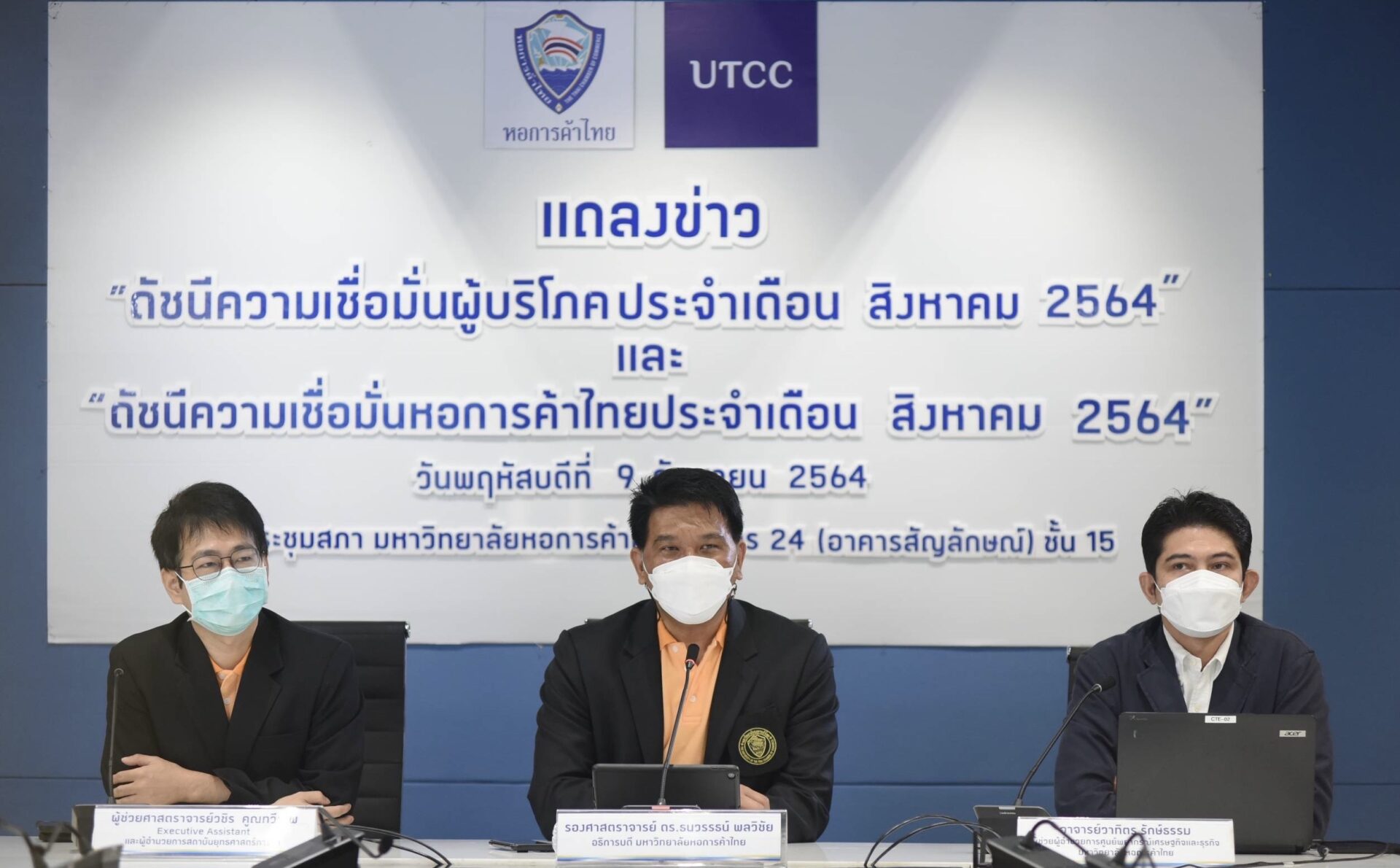 นายธนวรรธน์ พลวิชัย อธิการบดีมหาวิทยาลัยหอการค้าไทยและประธานที่ปรึกษาศูนย์พยากรณ์เศรษฐกิจและธุรกิจ เปิดเผยถึงผลสำรวจดัชนีความเชื่อมั่นผู้บริโภค ประจำเดือน สิงหาคม 2564 พบว่า ดัชนีมีการปรับตัวลดลงอย่างต่อเนื่องเป็นเดือนที่ 6 แตะระดับ 39.6 ซึ่งเป็นดัชนีที่ต่ำสุดเป็นประวัติการณ์ หรือ ต่ำสุดในรอบเกือบ23ปี นับตั้งแต่เดือนตุลาคม 2541 โดยปัจจัยที่ส่งผลทำให้ดัชนีมีการปรับตัวลดลงนั้น เป็นผลมาจากความกังวลต่อสถานการณ์การระบาดของโควิด-19 ในประเทศที่รุนแรงมากขึ้นจนรัฐบาลต้องขยายพื้นที่ควบคุมสูงสุดเป็น 29 จังหวัด โดยออกมาตรการมาตรการล็อกดาวน์และเคอร์ฟิว ส่งผลกระทบต่อการดำเนินชีวิตของประชาชน การทำธุรกิจ และภาวะเศรษฐกิจของประเทศแย่ลง ประกอบกับความกังวลในสถานการณ์ทางการเมืองที่มีเสถียรภาพน้อยลงและการฉีดวัคซีนให้กับประชาชนที่ยังล่าช้า