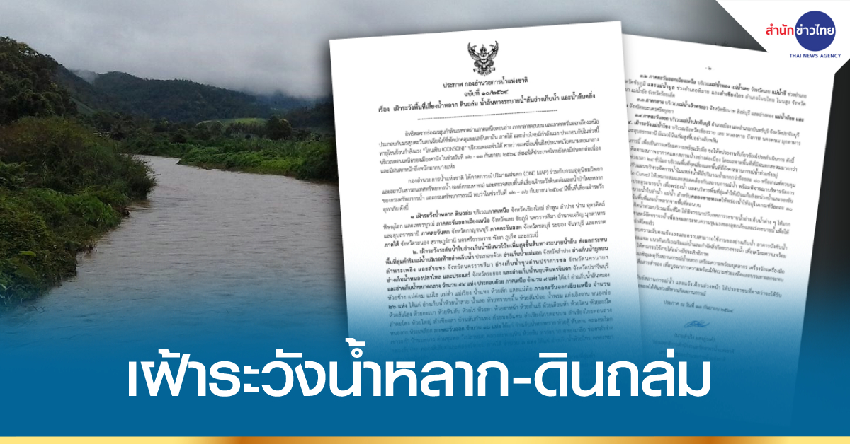 กรุงเทพฯ 11 ก.ย. – กองอำนวยการน้ำแห่งชาติ ประกาศเฝ้าระวังพื้นที่เสี่ยงน้ำหลาก ดินถล่ม น้ำล้นทางระบายน้ำล้นอ่างเก็บน้ำ และน้ำล้นตลิ่ง ช่วงวันที่ 12-16 ก.ย.นี้