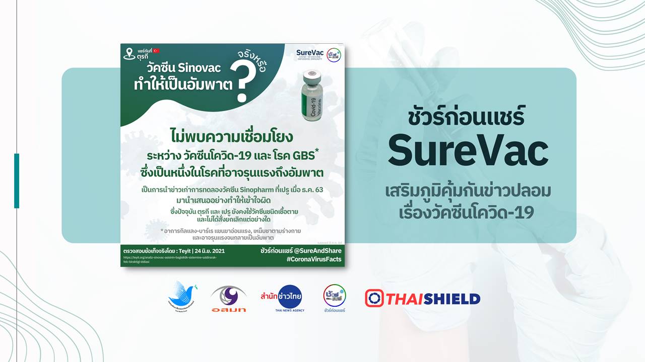 - พบอาสาสมัครป่วยเป็นโรค GBS ระหว่างการทดลองวัคซีน Sinopharm ไม่ใช่วัคซีน Sinovac ตามที่กล่าวอ้าง